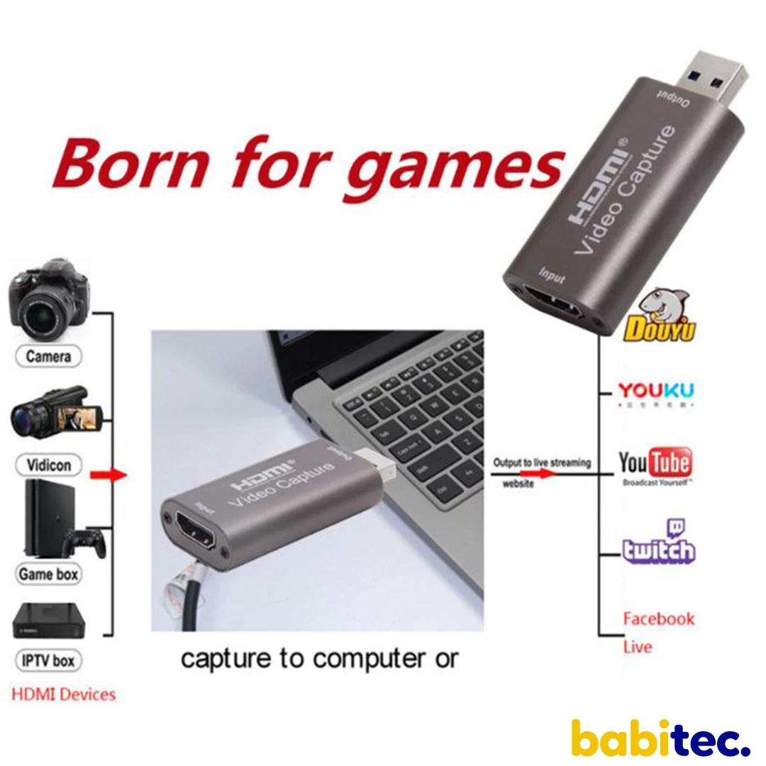 PRINCIPALES CARACTÉRISTIQUES * Supporter la résolution maximale d'entrée 3840 × 2160 @ 60Hz; * Prise en charge de la résolution maximale de sortie 1920 × 1080 @ 30Hz; * Supporte la couleur profonde 8/10/12 bits; * Supporte le câble standard HDMI AWG26: entrée jusqu'à 15 mètres, (résolution 1080P et inférieure); * Prend en charge la plupart des logiciels d'acquisition, tels que VLC, OBS, Amcap, etc; * Prise en charge de Windows, Android et MacOS; * Conforme à la vidéo USB et à la norme UVC; * Conforme à l'audio USB pour la norme UAC; * Sans alimentation externe, compact et portable. VENDU AVEC LE PRODUIT 1 * carte de capture1 * manuel d'utilisation |